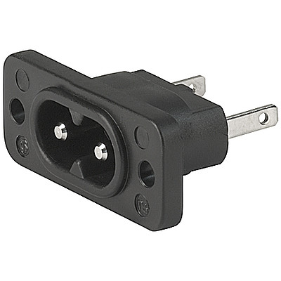 2576  IEC Appliance Inlet C8, screw-on mounting front or rear, solder or quick-connect or PCB terminal